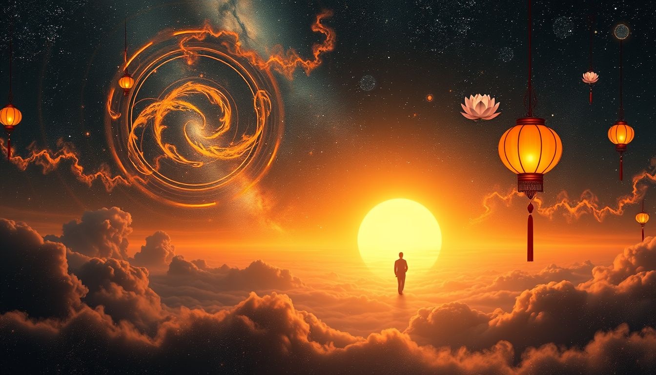 Yin i Yang, symbolizujące dualizm wszechświata, odzwierciedlają się w snach poprzez kontrastujące obrazy i emocje. Sen o jasnym słońcu (Yang) może być zrównoważony przez sen o głębokiej, spokojnej wodzie (Yin). Kluczem jest zrozumienie, czy te elementy współgrają, czy też walczą ze sobą, co wskazuje na wewnętrzne konflikty lub harmonię.